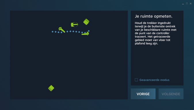 Via de Steam VR tool word je gevraagd om de omtrek van de speelruimte op te meten.