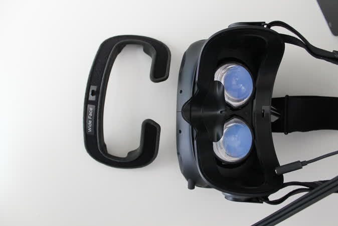 Als je de headset voor de eerste keer opzet is het belangrijk om hem juist af te stellen. Je draagt de headset als een soort helm op je hoofd. Aan de achterkant zit een ovaal deel die je precies over de bolling op de achterkant van je hoofd moet aansluiten. Aan de bovenkant en zijkanten kun je het klittenband losmaken om de grootte in te stellen. Ook het rubber op de voorzijde kun je verwijderen en eventueel vervangen voor het smallere stuk. Een goed afgestelde headset balanceert het gewicht van de headset op je hoofd, zodat niet het hele gewicht van de Vive op je voorhoofd of neus komt te hangen.