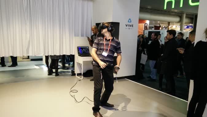 Waar je met kleine headsets als de Cardboard vooral video's kunt consumeren, kun je met de controllers van de Vive ook echt je omgeving beïnvloeden. De input van virtual reality is altijd een moeilijk vraagstuk geweest, want al twee jaar zien we tientallen halfslachtige pogingen om de virtuele wereld in het echt te manipuleren. Controllers zoals die van de Xbox nemen toch net iets van de ervaring weg, terwijl complexe rigs als deze niet echt in je huiskamer passen.