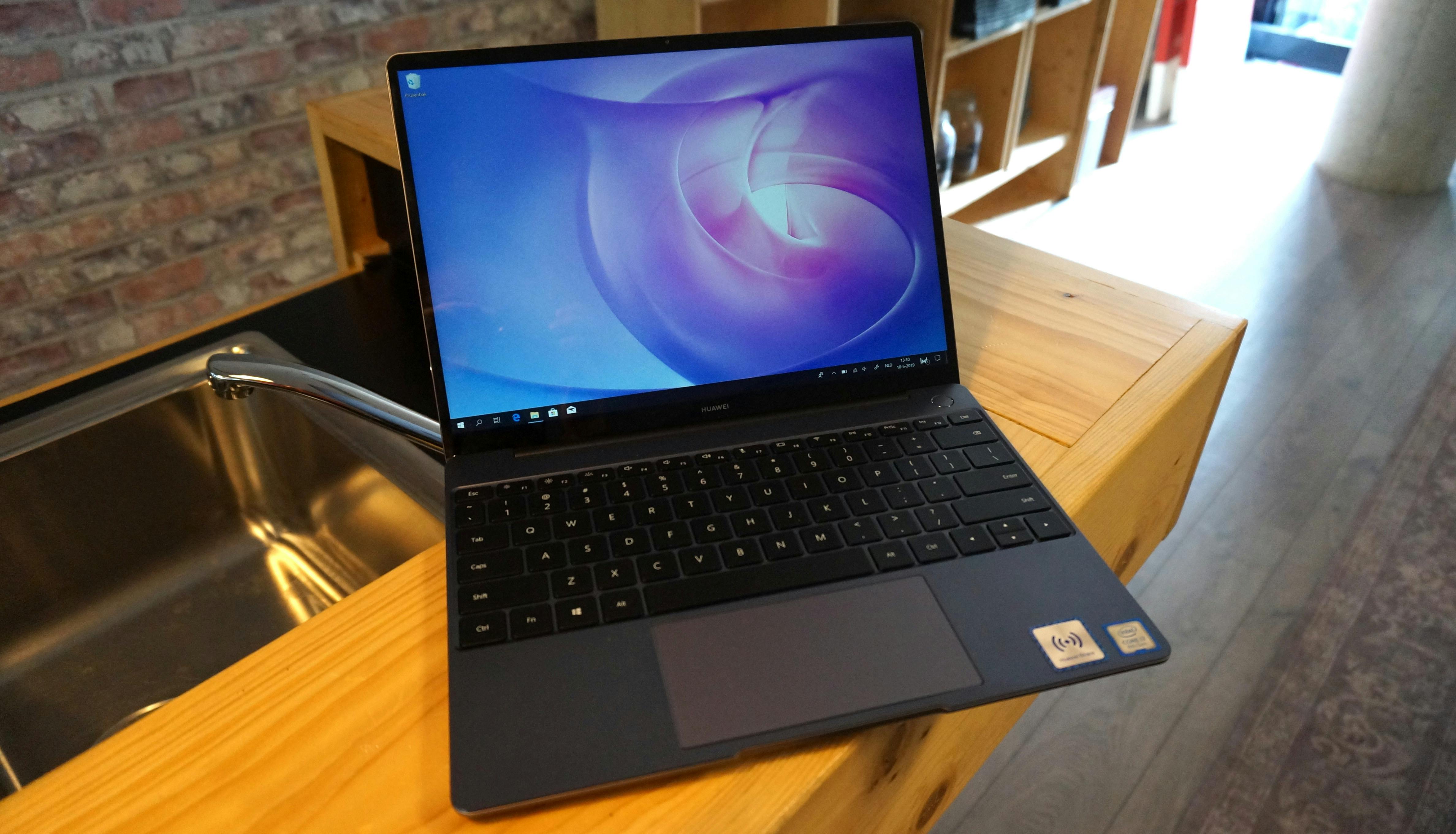 **Prijs** € 1299,- **Processor** Intel Core i7-8565U (quadcore, 1,8 GHz) **Geheugen** 8 GB (DDR 3) **Grafisch** Intel UHD graphics 620 **Display** 13,3 inch IPS (2150x1440) **Opslag** 512 GB SSD **Besturingssysteem** Windows 10 Home (64 bit) **Formaat** 21,2 x 28,6 x 1,5 cm **Gewicht** 1,3 kilo **Accu** 41,8 Wh **Connectiviteit** 2x usb-c, 3,5 mm, wifi **Overig** vingerafdrukscanner, dongel **Website** [www.huawei.com]( https://consumer.huawei.com/nl/laptops/matebook-13/specs/)