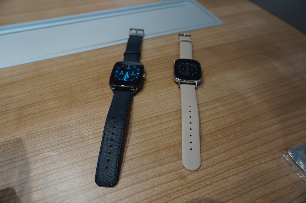 De kleinere uitvoering is niet per se voor vrouwen, al lijkt ASUS daar gezien de kleur van het meegeleverde bandje wel op te hinten. De grotere uitvoering heeft namelijk een donkerblauw lederen bandje terwijl de kleinere uitvoering een zacht roze lederen bandje heeft. De combinatie van de kast en lederen bandje maakt de ZenWatch 2 stijlvol. Op de stand van ASUS waren ook andere bandjes te zien van metaal en rubber, maar deze komen (vooralsnog) niet naar Nederland. Is blauw of roze niet helemaal niet je ding, dan kun je het standaardbandje eenvoudig verwijderen en een eigen horlogebandje bevestigen.