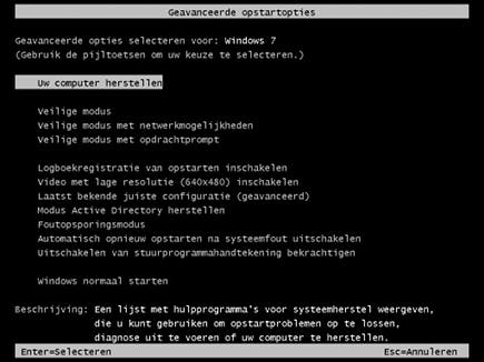 Door tijdens het opstarten op F8 te drukken, kunt u het systeemherstel ook direct vanaf de harde schijf starten.
