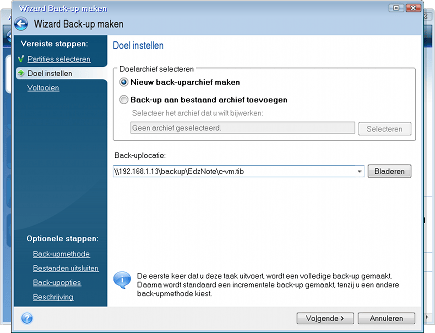 True Image biedt net als Norton Ghost de mogelijkheid het image direct op een netwerkschijf te plaatsen.