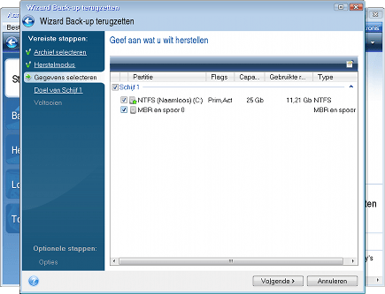 Kies tijdens een herstelactie voor de juiste schijf in de back-up.