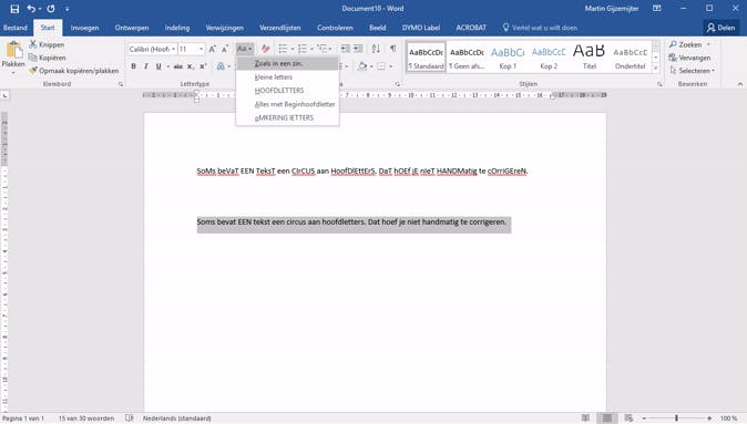 07 Een document met rommelige hoofdletters is in recordtempo rechtgezet met behulp van deze functie.