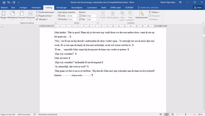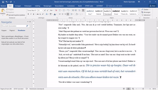 Die tekens lijken aanvankelijk rommelig, maar ze geven je enorm veel nuttige informatie. Zo laten de tekens je met behulp van puntjes zien waar er een spatie staat (zodat je dubbele spaties eenvoudig ziet), maar ook waar een harde return is gegeven (het alinea-teken) of een zachte return (het Enter-teken dat je ook op je toetsenbord ziet). Daarnaast geven deze symbolen je inzicht in waar een tab staat, waar een pagina eindigt en waar allerlei andere zaken zijn ingevoegd in Word die je het leven zuur kunnen maken als je niet weet dat ze er staan.