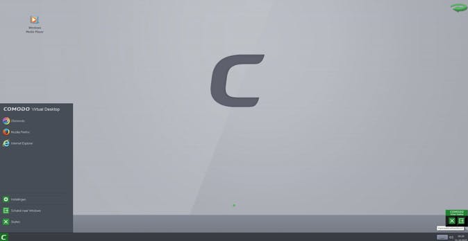 Met de groene pijl rechtsboven kun je wisselen tussen je eigen bureaublad en zo programma's in de beveiligde omgeving starten. Klik op de C links onderaan en kies voor je favoriete browser om op internet te surfen. Comodo filtert automatisch advertenties en controleert of de webpagina die je bezoekt, wel veilig is. Om de virtuele desktop weer te verlaten, klik je rechtsonder op het kruisje. Alle browsergegevens worden vervolgens gewist en niets is opgeslagen.