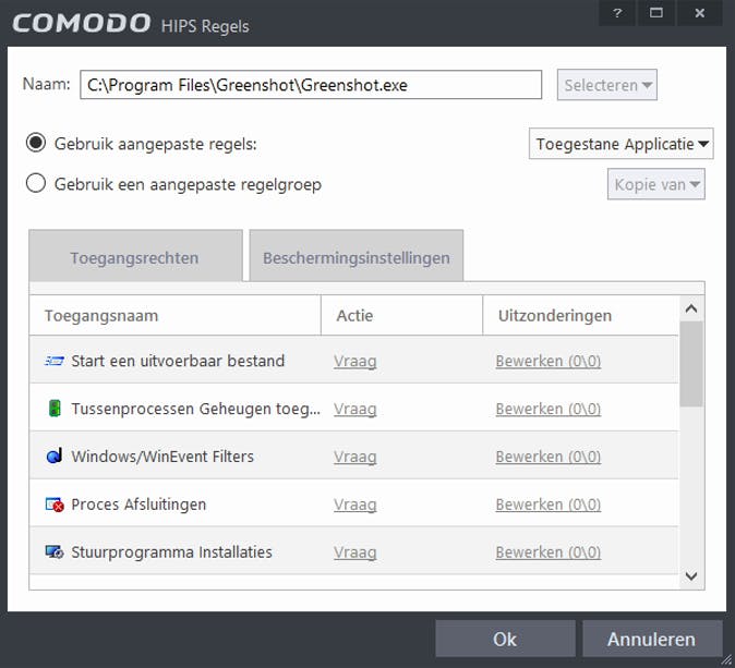 10 Heb je een vertrouwd programma waar Comodo toch steeds meldingen over blijft geven? Selecteer dan bij Gebruik aangepaste regels de optie Toegestane Applicatie.