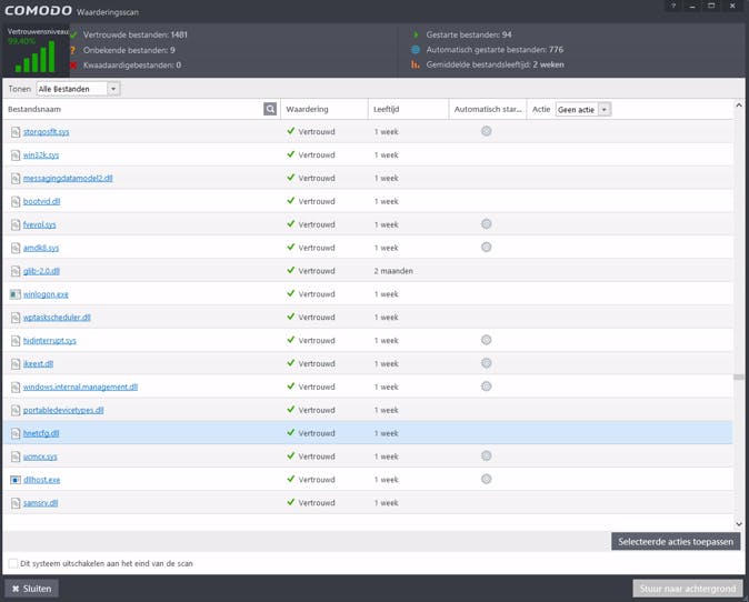 Het is handig om bijvoorbeeld de procesnaam op te zoeken in een zoekmachine en te kijken wat er naar voren komt. Het is bovendien mogelijk om met de rechtermuisknop op een proces te klikken en te kiezen voor Spring naar folder, zodat je weet waar het proces vandaan komt. Een alternatief is om een Waarderingsscan uit te voeren. Dit kun je doen door terug naar het hoofdvenster te gaan en weer op Taken te klikken. Vervolgens kies je voor Algemene Taken en klik je op Scan. Elk bestand wordt nu gecontroleerd op vertrouwdheid met de Comodo-servers.