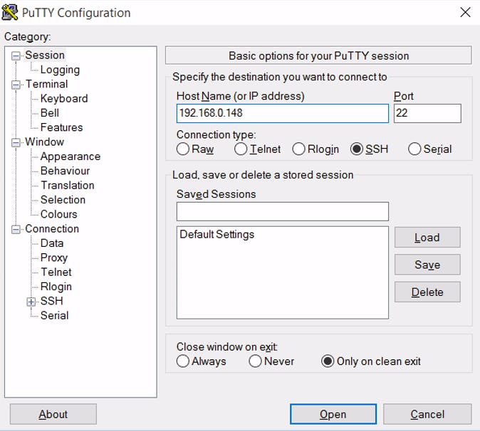 Inloggen met PuTTY