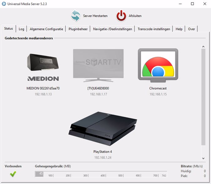 Voor de optimalisatie van streams informeert Universal Media Server naar de snelheid van je netwerk.