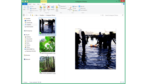 Ga op je computer naar je Dropbox-map en maak een nieuwe map aan met de naam Instagram Foto's. Kopieer de gewenste foto's naar deze map.