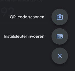 Het scenario is je inmiddels bekend: er verschijnt een QR-code of je kunt klikken op Can’t scan the QR code? mocht je liever de handmatige methode met een instelsleutel gebruiken.
