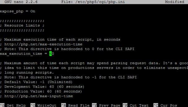 Nu schakelen we nog twee modules voor de webserver in met de opdracht sudo lighttpd-enable-mod fastcgi fastcgi-php. Daarna moeten we nog een instelling van PHP aanpassen. Doe dat met de opdracht sudo nano /etc/php5/cgi/php.ini. Start de zoekfunctie met een druk op Ctrl+W, typ max_execution_time in en druk op Enter. Nano toont nu de juiste regel, daar verander je het getal naast het gelijkheidsteken naar 120. Druk op Ctrl+O om je wijziging op te slaan en Ctrl+X om Nano af te sluiten.