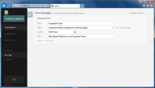 Rss-lezers heb je in verschillende vormen. Je kunt er een op je desktop-pc draaien, maar als je dan onderweg bent met je smartphone of op je terras zit met je tablet, heb je geen toegang tot de feeds die op je computer ingelezen zijn. Een alternatief vormen webgebaseerde rss-lezers, zoals het lang populaire Google Reader. Dit soort diensten kun je echter even goed op je eigen server draaien.