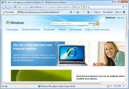 Het browserkeuzescherm verschijnt ook als u tevreden bent met Internet Explorer. Het biedt bovendien de mogelijkheid om Internet Explorer te installeren terwijl het al op uw computer staat. Als u geen keuze maakt, zal het venster wederom verschijnen zodra u uw computer opnieuw opstart. Om van het browserkeuzescherm af te komen, moet u een keuze maken en dat kan ook betekenen dat u moet bevestigen dat u Internet Explorer wilt blijven gebruiken. Klik in dat geval op Installeren onder Internet Explorer 8. In dit geval wordt er echter niets geïnstalleerd, want Internet Explorer staat immers al op uw pc. Even later krijgt u een venster te zien waarin Microsoft u bedankt voor uw keuze, en daarna bent u van het browserkeuzescherm verlost.