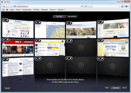 Het mozaïek met meest bezochte sites kunt u zelf aanpassen, zodat u het kunt gebruiken om snel tussen uw favoriete sites te wisselen.