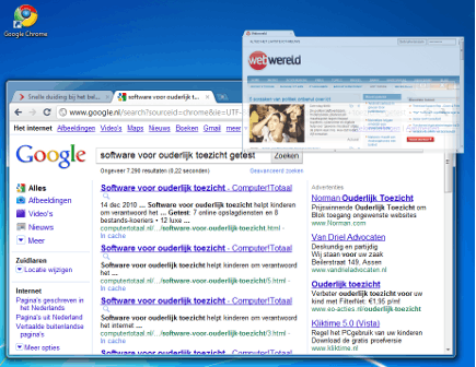 Ook Chrome kent tabbladen, maar het mist de previews die Opera biedt. Een handige toevoeging aan Chrome is weer wel dat de tabbladen heel gemakkelijk kunnen worden ingedeeld en van elkaar kunnen worden losgetrokken. Die laatste mogelijkheid is misschien nog wel prettiger dan de eerste. Om tabbladen anders in te delen is het voldoende om ze met de muis 'vast te pakken' en ze te verslepen terwijl u de linkermuisknop houdt ingedrukt. Net als bij Opera kunt u voorkomen dat een tabblad nog van plaats veranderd of wordt gesloten. Dit doet u door er met de rechtermuisknop op te klikken en dan te kiezen voor Tabblad vastzetten. Nog mooier is dat een tabblad ook heel eenvoudig uit de browser kan worden gesleept en dat er vervolgens een tweede browservenster opent. Zo kunt u, wanneer u meerdere websites hebt geopend, snel een schifting maken tussen de sites die u open wilt houden en sites die kunnen worden weggeklikt.
