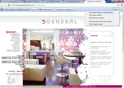 Problemen met de vreemde taal van een bepaalde website? Chrome beschikt standaard over een vertaalfunctie. Zodra de browser constateert dat een geopende webpagina niet in het Nederlands is opgesteld, verschijnt er een werkbalk met het aanbod om de pagina te vertalen. In de vertaalde versie is alleen de tekst vertaalt, aan de opmaak en eventuele interactieve onderdelen verandert er niets. Via de instellingen kunt u onder andere aangeven of u wilt dat een pagina die in een bepaalde taal is opgesteld altijd wordt vertaald. Klik hiervoor op Opties in de werkbalk van de vertaalfunctie en kies voor Altijd vertalen in het Nederlands.