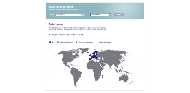 Ook Hi heeft geen specifieke bundel voor internetten in het buitenland, maar het grote voordeel dat Hi heeft boven andere providers, is dat het bedrijf werkt met vaste tarieven. In Europa kunt u bij Hi mobiel internetten voor 2,38 euro per MB, terwijl u in de rest van de wereld (Zone 2 genoemd), 5,95 euro per MB betaalt. Toegegeven, nog steeds een pijnlijk hoog bedrag per MB, maar u weet wel waar u aan toe bent en het is beter dan de 12 euro per MB die u in sommige landen betaalt bij andere providers.