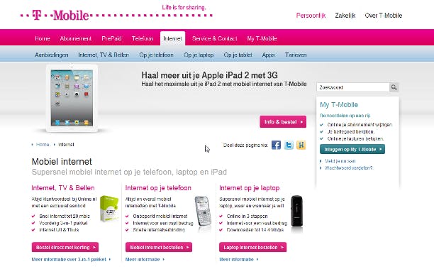Opmerkelijk genoeg heeft T-Mobile weinig ondersteuning voor internet in het buitenland (waarschijnlijk ook omdat het bedrijf prat gaat op z'n hotspots). Mobiel internetten in het buitenland is wel mogelijk, maar hier zijn geen speciale bundels of gereduceerde tarieven voor, met prepaid is mobiel internetten in het buitenland helemaal niet mogelijk.