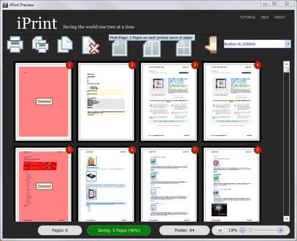 Er is nog een manier waarop u papier en inkt kunt besparen. iPrint voorziet namelijk in knoppen waarmee u twee of vier pagina's op één blad papier krijgt - uiteraard verkleind.