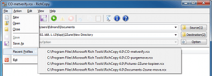 Het aantal opties voor een kopieeractie van RichCopy is groot. Als u ze steeds weer opnieuw moet instellen, is dat lastig en bovendien is de kans groot dat er dan fouten worden gemaakt of dat opties worden vergeten. Het is dus handig om alle kopieeropties in een profiel vast te leggen dat u later eenvoudig kunt openen. Open het Option-scherm en stel alle opties op de door u gewenste manier in. Klik vervolgens op OK en daarna op File, Save as. Geef de kopieeropties een naam, liefst een waarmee u gemakkelijk onthoudt om wat voor type opties het gaat, en klik op Opslaan. Als u de opties op een later moment wilt gebruiken, klikt u op File, Recent profiles en selecteert u het juiste profiel.