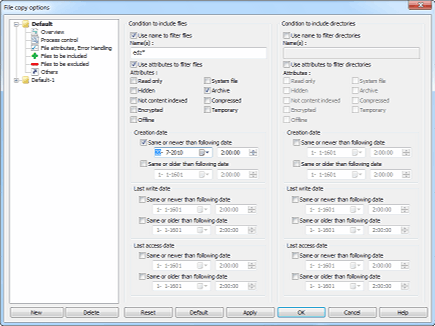 RichCopy heeft veel opties, maar tot nu toe hebt u er nog maar een klein deel van gezien. Via View, Advanced, Action, Copy Options kunt u nog veel meer opties selecteren. Zo zijn er opties voor Process Controll, waarmee u de systeemimpact van een kopieeractie kunt sturen, er zijn File attributes, er is een 'error handling'-pagina vol mogelijkheden om attributen en beveiligingsinformatie aan bestanden toe te voegen, bij Files to be included en Files to be excluded vindt u uitgebreide filtermogelijkheden en onder Others zit onder andere de mogelijkheid om naar een ftp-server te kopiëren. Al deze opties kunt u gebruiken om uw kopieerslag te finetunen. Bovendien kunt u de door u gemaakte keuzes uiteindelijk opslaan in een profiel voor hergebruik, en dat is gezien de hoeveelheid aan mogelijkheden zeker geen overbodige luxe!