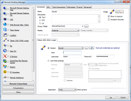 Remote Desktop Manager kent veel verschillende soorten sessies: RDP, Telnet, LogMeIn, en nog vele andere. Klik met de rechtermuisknop op Sessions en kies Add blanc session. Selecteer in het venster het gewenste type en geef alle benodigde opties mee. Hebt u bijvoorbeeld Putty op uw pc staan (een programma om SSH-verbindingen te maken) en selecteert u hier Telnet/SSH, dan leest Remote Desktop Manager alle sessies uit die in Putty zijn geconfigureerd. U hoeft ze alleen maar te selecteren, bij Session. Handig is ook dat u bij Group/Folder een onderverdeling van alle sessies kunt maken. Dat zorgt ervoor dat het hoofdscherm overzichtelijker wordt. Is alles naar wens ingesteld, dan klikt u op OK. Remote Desktop Manager is echt een must-have voor de geïnteresseerde netwerkgebruiker.