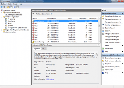 Event Viewer - of, in het Nederlands: Logboeken - kan via het configuratiescherm worden gestart of door event in te typen in het zoekvenster van het Start-menu. Ook als u een Nederlandstalige Windows-versie hebt, worden vervolgens de 'gebeurtenislogboeken' weergegeven, die daarna via een muisklik kunnen worden geopend. Zoek in de logboeken naar een fout of waarschuwing en noteer het Gebeurtenis-ID en de Bron die in de kolom ervoor staat. Ga nu naar Eventid. Typ bij Event ID het getal in dat u hebt overgenomen bij Gebeurtenis-ID en bij Event Source de naam die u hebt overgenomen bij Bron. Klik nu op Search. Na korte tijd zal de website in veel gevallen aanvullende informatie over de gebeurtenis geven. Soms vindt u daar ook nog koppelingen bij naar nog meer informatie leiden.