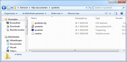 IPNetInfo is een gratis programma van Nirsoft. Nirsoft is een leverancier van software voor beheerders, en enkele van zijn producten mogen gratis worden gebruikt. Ga naar IpNetInfo en klik bijna helemaal onderaan de pagina op Download IPNetInfo (in ZIP file). Pak de bestanden uit en bewaar ze in een map. Meteen daarna kunt u netinfo.exe starten, verdere installatie is niet nodig.