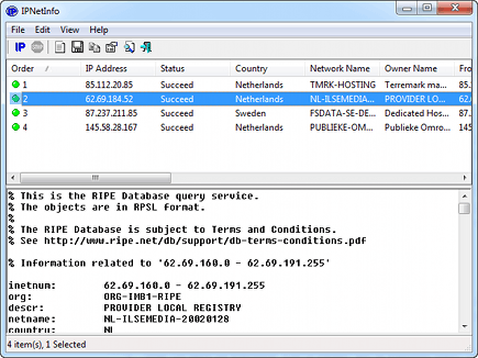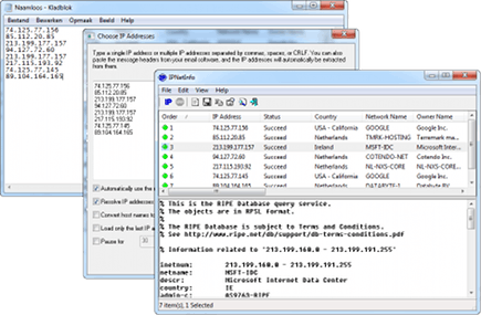 Klik op een naam of adres om de gegevens te lezen die IPNetInfo heeft verzameld.