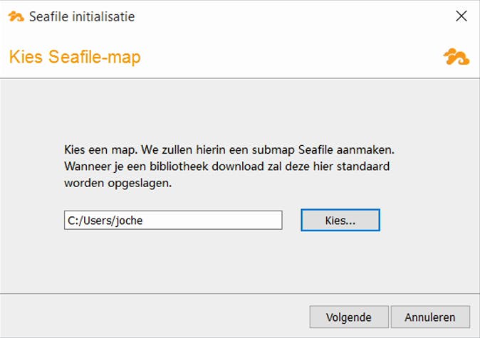 Selecteer een schijf om alle Seafile-bestanden in op te slaan