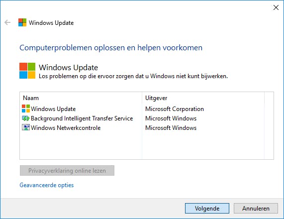 Het kan gebeuren dat het Windows updateproces niet naar wens verloopt: Windows wil updates bijvoorbeeld steeds opnieuw uitvoeren of er wordt zelfs helemaal niets meer geüpdatet. Microsoft heeft een website die je kan hierbij kan helpen. Zodra je hier de juiste Windows-versie hebt gekozen, kun je een Windows Update-probleemoplosser downloaden en uitvoeren, waarna je de stappen van de wizard volgt. Lost dat het probleem niet op, geef dat dan aan op de website en volg ook hier de verdere instructies, zoals de Microsoft Update-catalogus downloaden of zelf een update downloaden en installeren.