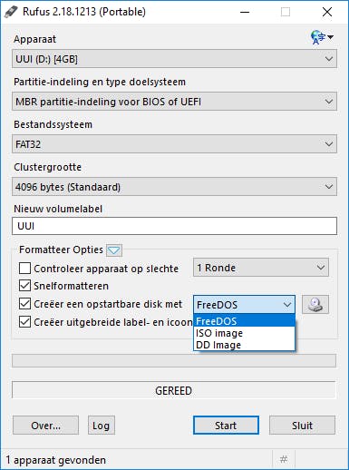 Dos is een prima besturingssysteem voor bios-updates. Je kunt dit regelen vanaf een usb-stick. Een handige tool om zo’n stick te prepareren is het portable Rufus. Stop een (lege) usb-stick in je pc en start Rufus op. Selecteer je stick bij Apparaat en kies FAT32 bij Bestandssysteem. Bij Creëer een opstartbare disk met selecteer je FreeDOS. Bevestig met Start en met OK. Sluit het venster na afloop en kopieer ook het bios-updatebestand naar deze stick. Ten slotte start je je systeem met deze stick op en voer je het updatebestand uit. Mogelijk moet je eerst de bootvolgorde in je bios-setup aanpassen.