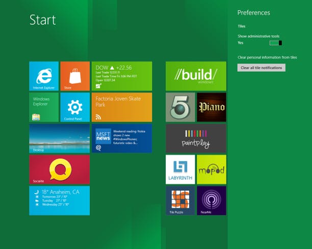 Enkele maanden geleden is de Developer Preview van Windows 8 uitgebracht. Hoewel het hier gaat om een vroege testversie van de volgende editie van Windows, geeft deze ontwikkelaarsversie al een goed beeld van de koers die de makers varen. Naar verwachting wordt de uiteindelijke versie van Windows 8 later in 2012 uitgebracht. Hebt u de ontwikkelaarsversie nog niet? Via de website van Microsoft kunt u Windows 8 downloaden. Voor een overzicht van de nieuwigheden in Windows 8 verwijzen we u naar het artikel Eerste indruk van Windows 8 op onze website. De ontwikkelaarsversie van Windows 8 laat duidelijk zien dat het product nog in ontwikkeling is. Zo is het aantal instelmogelijkheden nog relatief beperkt en ontbreekt bepaalde functionaliteit. Een probleem hoeft dit niet te zijn. Met wat extra inspanning, hulp van externe programma's of via het Windows-register, zet u de toekomstige Windows-versie alsnog naar uw hand.