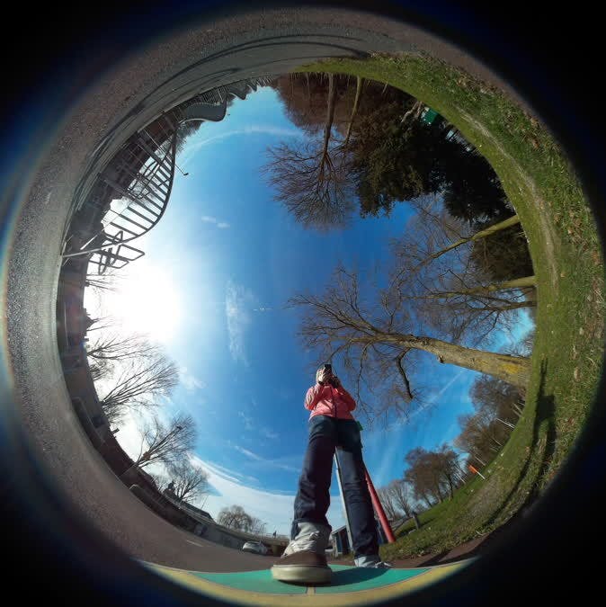 Je kunt kiezen voor verschillende modi, bijvoorbeeld Ring, Dome of Panorama. Het is wel even oefenen om te werken met het 360 graden-beeld. Het geeft vervorming en rare uitgetrokken lichamen of gebouwen als je verkeerd in het beeld staat. Als je eenmaal doorhebt hoe het werkt, kun je er ook je voordeel mee doen.