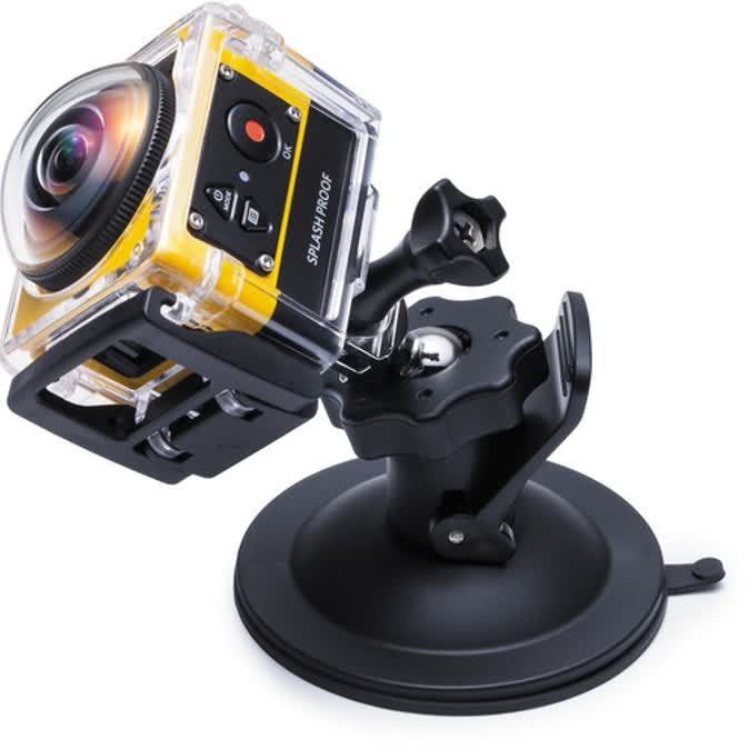 De Kodak SP360 met een van de bijgeleverde accessoires.