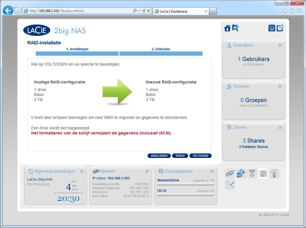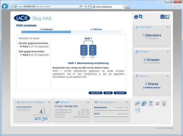 De 2big NAS ondersteunt alleen RAID0 en RAID1.