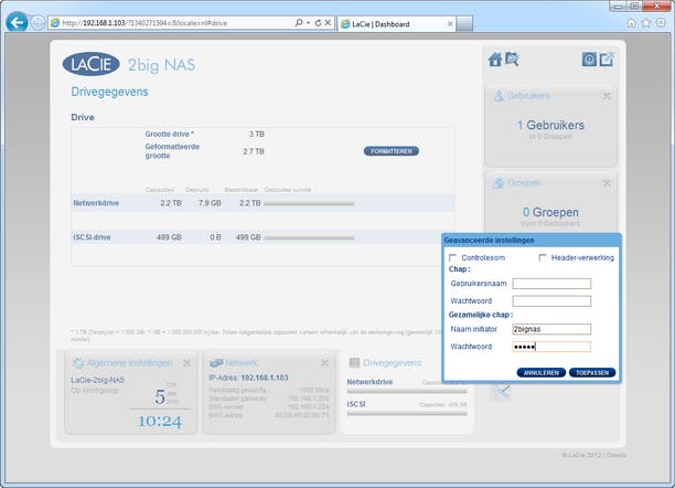 De 2big NAS biedt in tegenstelling tot de 2big Network wel iSCSI.