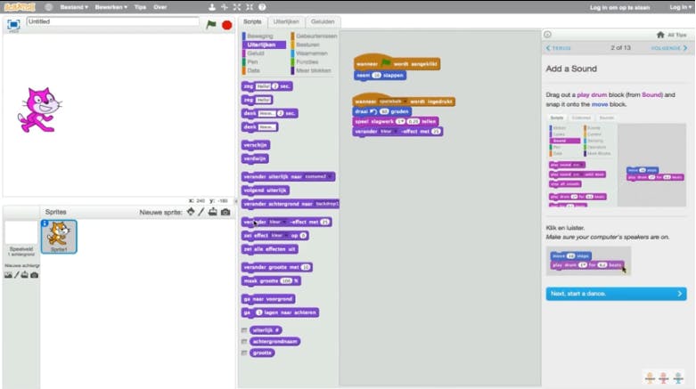 Met Scratch kunnen kinderen spelletjes, muziek, interactieve animaties en kunstwerken maken die als project met anderen gedeeld kunnen worden, zodat je van anderen kunt leren.