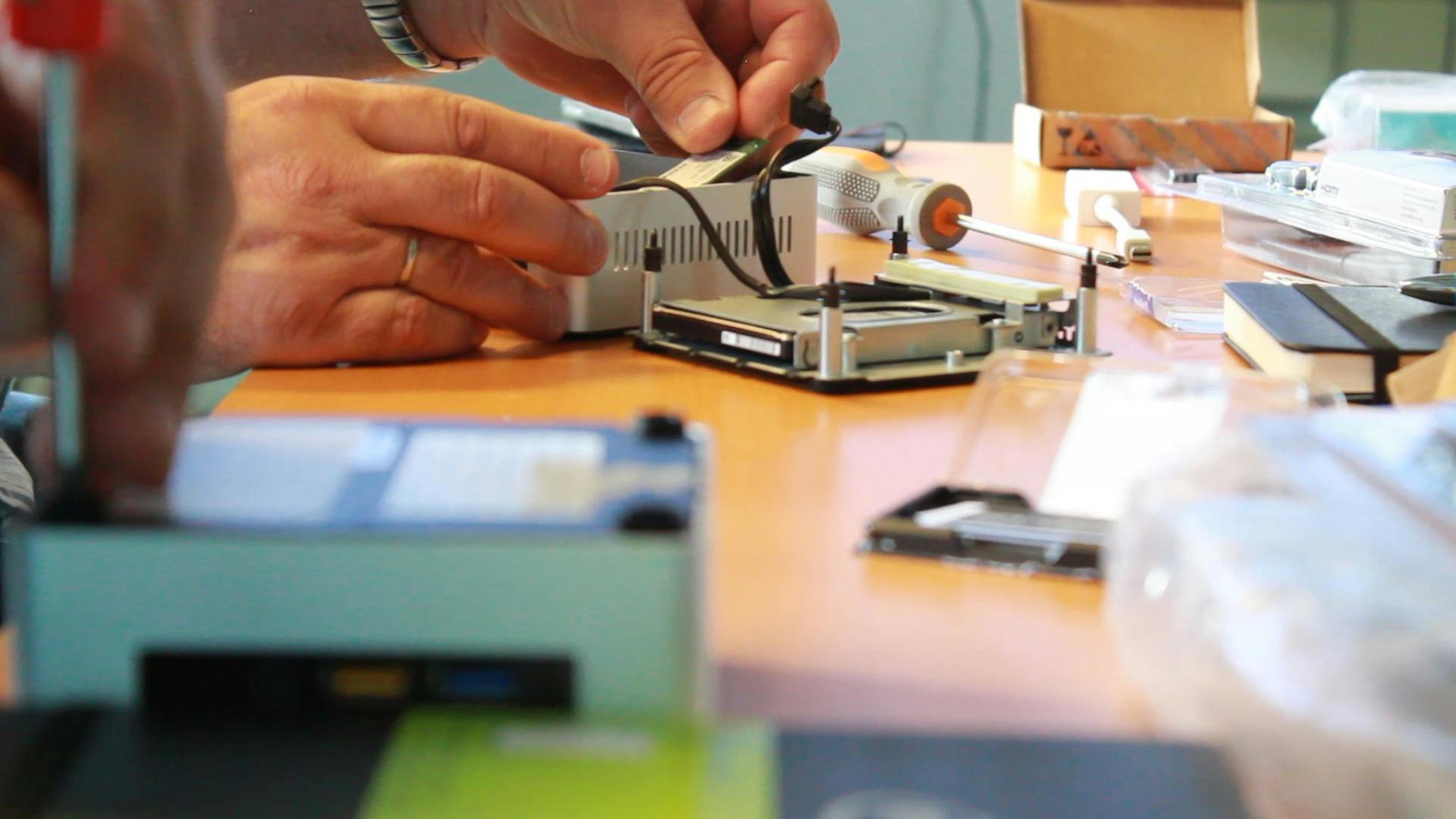 Voor de deelnemers wordt het de NUC5i5MYHE, die voorzien is van een krachtige Intel Core i5. Geheugen, opslag en eventueel wifi moeten ze tijdens deze workshop zelf plaatsen. De nieuwe NUCs beschikken over M.2 sata waardoor een supersnelle ssd met het formaat van een klein printplaatje direct in het moederbord kan worden geprikt. Bij dit hogere model NUC (te herkennen aan de letter H in het typenummer) is daarnaast intern ook nog ruimte voor een extra 2,5 inch drive. Ettie Moed: "Dat is handig voor in de toekomst."