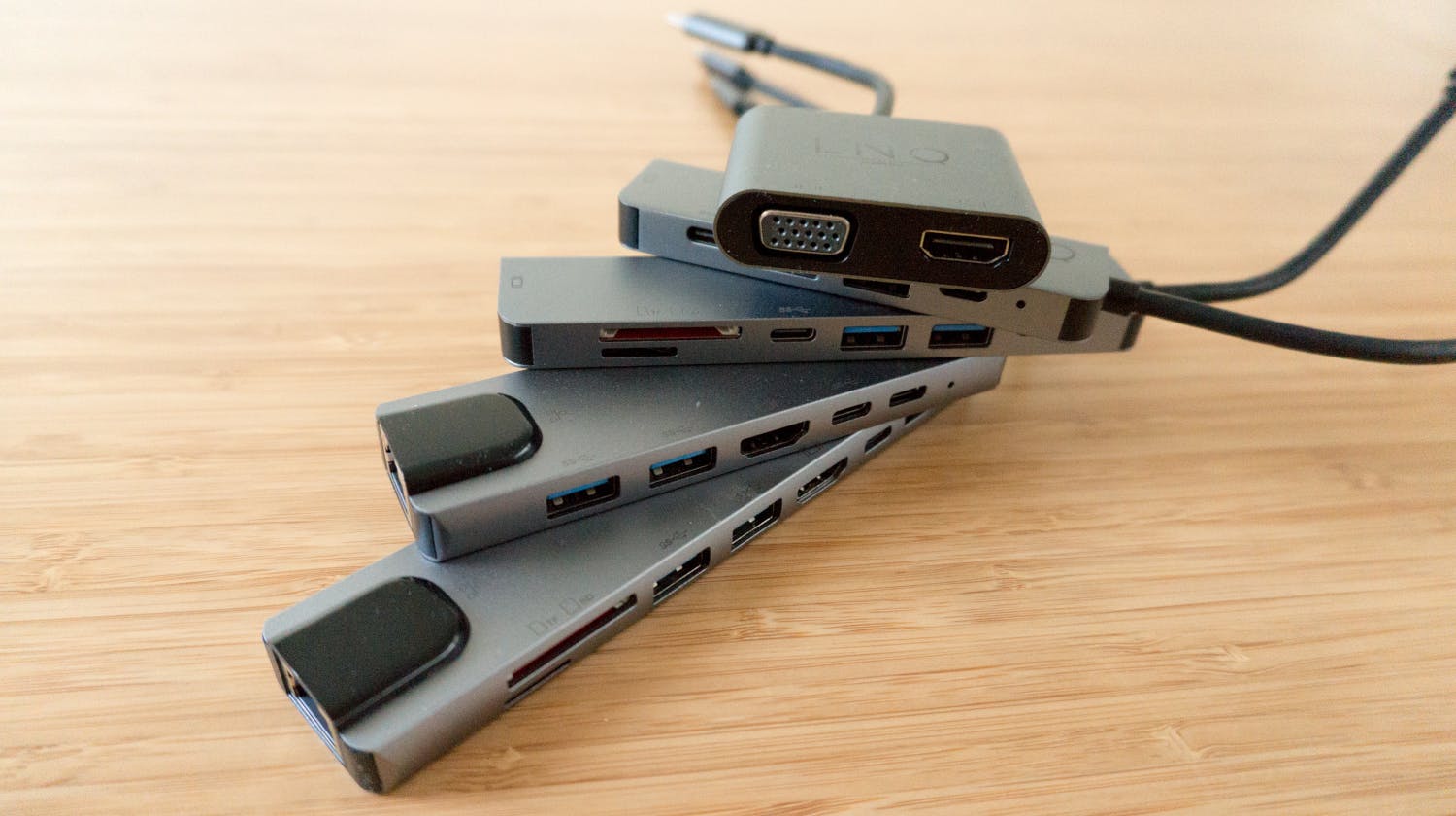 Alle vijf de geteste hubs zijn voorzien van een hdmi-aansluiting die het door de laptop geleverde DisplayPort-signaal omzet naar maximaal 4K met 60 Hz. Vooral dat laatste is prettig, want er zijn ook soortgelijke hubs die maximaal geschikt zijn voor 4K met 30 Hz. Uiteraard hangt het van je laptop zelf af of 4K met 60 Hz daadwerkelijk door de gpu geleverd kan worden, maar bij de meeste laptops kan dat tegenwoordig. De 4 in 1 Usb-c Multiport Hub biedt als enige ook nog een vga-aansluiting naast de aanwezige hdmi-aansluiting. Wellicht handig als je af en toe nog beamers met vga tegenkomt. Sommige van de hubs bieden een usb-c-aansluiting, maar die is ook als je een usb-c-scherm hebt niet geschikt voor het aansluiten van een beeldscherm. Het DisplayPort-signaal wordt alleen gebruikt voor de ingebouwde hdmi- en vga-aansluiting.