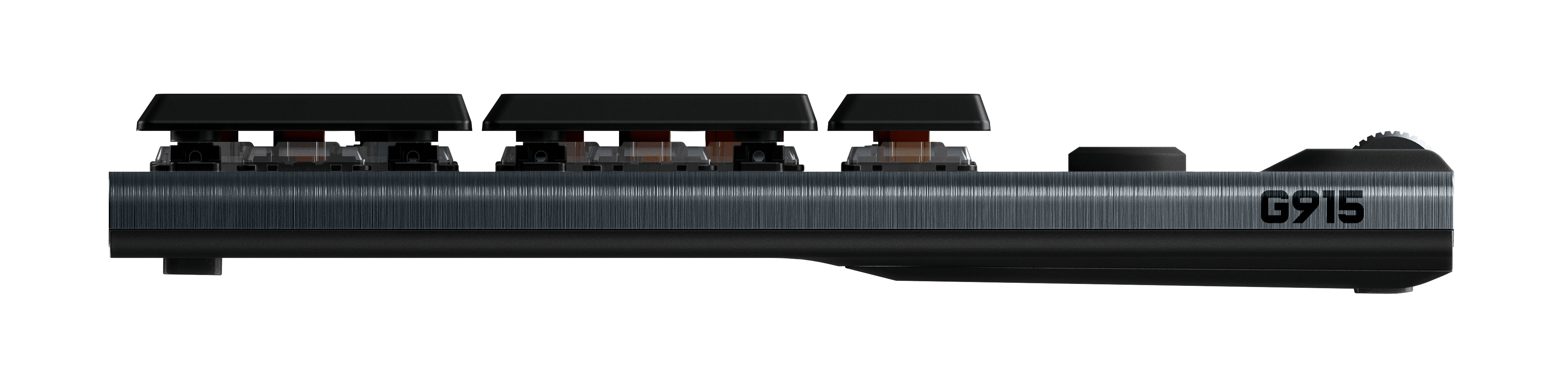 **Prijs** € 249,- **Aansluiting** LIGHTSPEED usb-ontvanger (meegeleverd), Bluetooth of via de micro-usb-aansluiting **Accuduur** 30+ uur met 100% helderheid aan, 1200 uur met de RGB-verlichting uit **Verlichting** RGB **Software** G HUB Software **OS** MacOS X, Windows 7, 8, 10, Android, Chrome OS en iOS **Afmetingen** 475 x 150 x 22 mm **Gewicht** 1025 g **Lengte kabel** 1.8 meter **Website** [www.logitech.com](https://www.logitechg.com/nl-nl/products/gaming-keyboards/g915-low-profile-wireless-mechanical-gaming-keyboard.html)