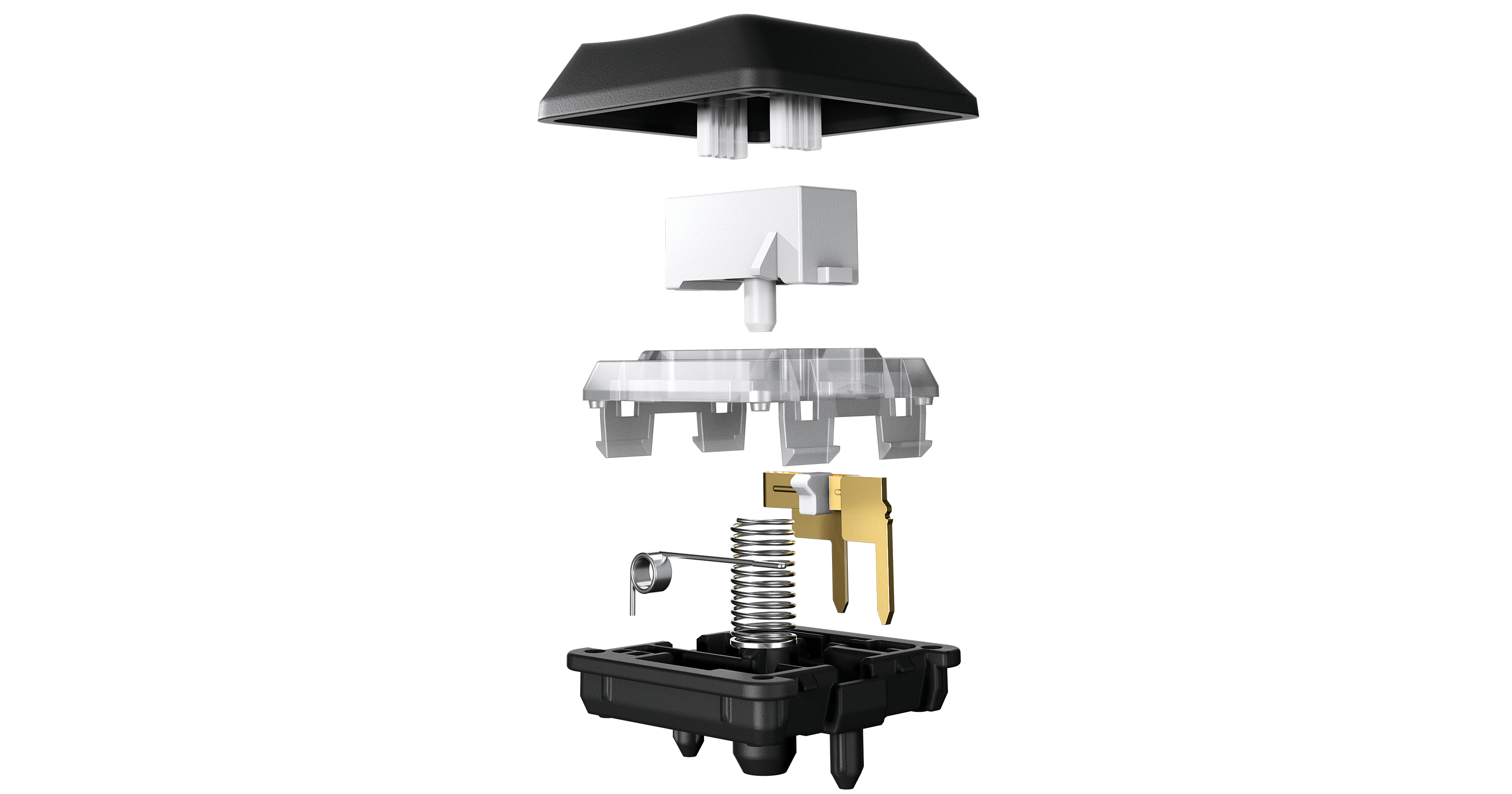Het toetsenbord is zo plat dankzij de nieuw ontworpen mechanische schakelaars. Vergeleken met het vorige toetsenbord zijn deze schakelaars nog half zo hoog, maar bieden ze dezelfde prestaties als de traditionele schakelaars. Niet iedereen houdt van het geklik tijdens het typen, daarom zijn er drie verschillende type schakelaars. De GL Clicky-schakelaars hebben een klik met voelbare feedback. De tactile-schakelaars hebben alleen een voelbare feedback en de lineare schakelaars typen vloeiend zonder klik en feedback. Tijdens het typen merken we direct op dat de toetsen net zo groot als het vorige toetsenbord zijn en de afstanden hetzelfde zijn gebleven. De feedback is subtiel en het klikgeluid niet storend. De gladde toetsen met lichte kuiltjes zorgen ervoor dat je gemakkelijk en snel tussen de toetsen kan glijden. Wel missen we de ondersteuning voor de pols. Gelukkig is het toetsenbord recht is gebleven, zodat het vinden van een polssteun niet heel ingewikkeld zal zijn.
