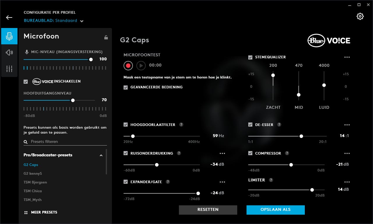 De microfoon was bij Logitech vaak een pijnpunt. De keuze van Logitech om Blue Microphones in 2018 over te nemen werpt nu duidelijk zijn vruchten af. De afneembare microfoon die bij de Logitech Pro X Wireless geleverd wordt klinkt erg goed en met de Blue Vo!ce software kan het stemgeluid volledig naar wens worden gefinetuned. Je kunt het naar eigen smaak aanpassen of het profielen van je favoriete streamer downloaden en dat gebruiken.