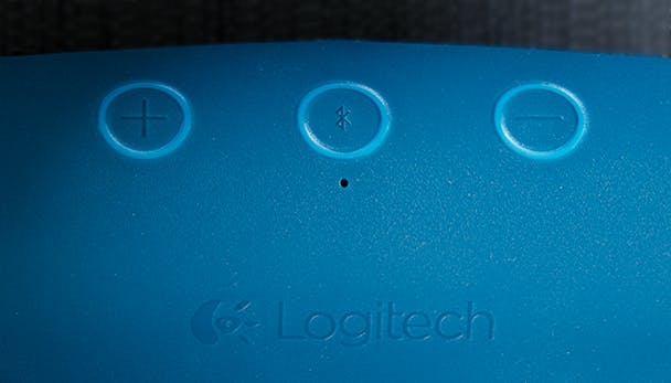 Bedien de Logitech X300 met de knoppen op de bovenkant van de speaker.