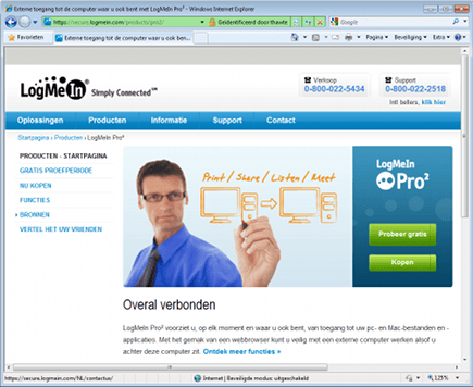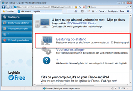 Met behulp van LogMeIn kunt u via internet overal en altijd veilig uw thuiscomputer gebruiken. Ingewikkelde software-installaties zijn daarbij overbodig. Het enige dat u nodig hebt is een webbrowser en uw login-gegevens.