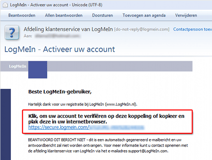 Activeer uw LogMeIn-account, via de link in de bevestigingsmail.