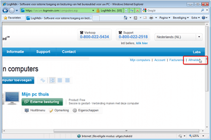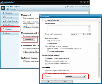 Pas de taalinstellingen van het LogMeIn-programma aan naar Nederlands.